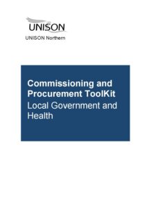 New Commissioning and Procurement Toolkit for UNISON Northern (April 2008). It is divided into 11 parts covering: The Political Economy of Commissioning and Procurement, Developing a Branch strategy, Reviewing Services, Efficiency reviews, Shared Services Projects, Options Appraisal, The case for in-house provision, Capital works and BSF/PFI/PPP projects, Procurement and commissioning process, Protecting jobs, terms and conditions and Community and social benefits from procurement.