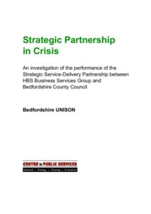 Bedfordshire County Council agreed a ยฃ267m Strategic Service-Delivery Partnership with HBS Business Services Group in June 2001 and transferred 550 staff to HBS. Bedfordshire UNISON commissioned the Centre to undertake an evaluation of the Strategic Partnership. The study revealed that the partnership was in crisis and had failed to deliver. The contract was terminated in August 2005. Documents include the rationale for terminating the contract and the terms of the agreement.