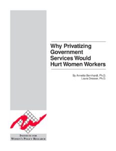 Why Privatizing Government Services Would Hurt Women Workers By Annette Bernhardt and Laura Dresser, Institute for Women’s Policy Research, Washington DC.