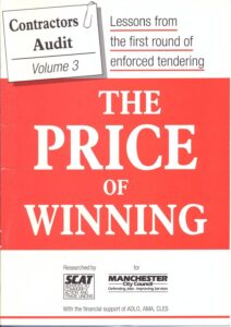 Published by Manchester City Council and researched by SCAT, the Contractors Audit: The Price of Winning (Volume 3) provides a comprehensive analysis of the enforced tendering of public services and its implications, including detailed economic and commercial analysis and discussion on the possible effects upon jobs and services (1989).