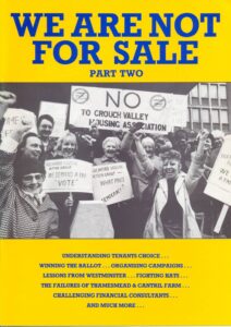Sets out the detailed implications of the 1986 and 1988 Housing Acts which legislated for Housing Action Trusts (to improve estates and sell them to private landlords, developers, housing associations or co-ops), estate and whole stock transfers to housing associations and the privatisation of management and maintenance of estates. The government sought to extend a free market in private rented housing and sought to attract large institutional investors to become landlords. Draws on lessons of tenants campaigns around Britain since the action guide was published in 1985. (48 pages).