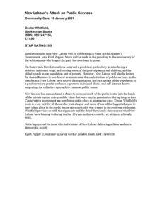 “This book refutes the premise that modernisation and marketisation go hand in glove. In his defence of keeping the public sector public, Whitfield breaks down New Labour’s rationale for marketisation by explaining exactly how markets work in theory and practice and most importantly how they can fail. …….does offer an alternative way forward and includes examples of successful campaigns against privatisation of the public services.” Labour Research, October 2006