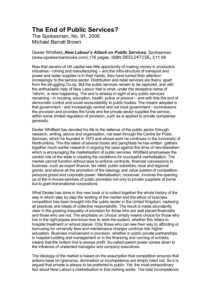 “What Dexter has done in this new book is to collect together the whole history of the way in which step by step the working of the market and the ethos of business competition has been brought into the public sector in the United Kingdom, replacing all practices and ideals of collective responsibility. The result is made abundantly clear in the growing inequality of provision for those who are well placed financially and those who are not.” Michael Barratt Brown, The Spokesman, No 91, 2006