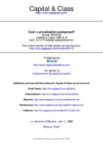 Coal: a privatisation postponed? Capital & Class, Spring 1985, vol. 9, No. 1, pp5-14