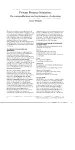 Private Finance Initiative: The commodification and marketisation of education, Dexter Whitfield, Education and Social Justice, Vol.1 No.2 Spring 1999