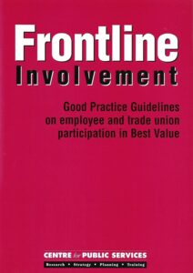 Guidelines for frontline involvement; corporate policies; summary of Working Together for Best Value research; involvement of frontline employees; commitment to quality employment, equity, sustainability and directly provided services; employees and unions involved throughout the Best Value process; re-organising in-house services; examining market testing options; local agreements; advice and support; technical and quality assessment, April 2001.