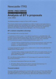 The City Council decided not to proceed with a Strategic Partnership for ICT and related services following a procurement process and to undertake the work in-house. No Corporate Takeover of Council Services is by Newcastle’s UNISON’s ITRS Evaluation Team assisted by the Centre for Public Services. Part 1: In-House Capacity for Change Management – makes the case for an in-house solution. Part 2: BT Performance – describes the company’s strategic blunders, outsourcing and investment record in the North East region.