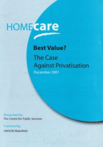 the support of UNISON sought to deliver a Home Care Service of which this community can be proud. Inspectors have recently praised it as a high quality service delivered by well-motivated and trained staff. They have however criticised the cost of the services and are set to recommend large-scale privatisation of the service.
