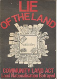 SCAT worked with several community campaigns confronted by property speculation including the Battersea Redevelopment Action Group and the North Southwark Community Development Group to produce a highly critical analysis (1976) of the Community Land Act 1975 as a betrayal of land nationalization. It contained reports on Southwark, Cardiff, Lewes, Battersea and Newcastle in addition to a guide of the Act.