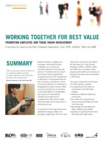Focusing on the involvement of elected members, managers and employees in the Best Value process, this project, sponsored by the Improvement and Development Association, Association for Public Service Excellence, Local Government Information Unit, UNISON, Transport and General Workers Union, GMB Union and the Employers Organisation, included: An assessment of the extent of involvement of a range of groups in Best Value; Evidence of different methods of involvement; The results of a comprehensive survey of local authorities and trade union branches; Key findings and examples from 11 detailed case studies; and Guidance on good practice for local authorities and trade unions.