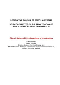 Addresses the key issues determined by the Select Committee on the cost, quality, impact and the effect on income and wealth inequality, public participation, social cohesion and the role of government. Includes a brief political economy overview, a typology of privatisation, an alternative strategy and 23 recommendations for action by the South Australia legislature (June 2021).