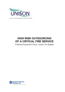 The Protective Equipment Group (PEG) provides specialist equipment, expertise and services ranging from respiratory and chemical protection to high line and water rescue. It employs 35 staff and operates 24/7/365 for emergency services. The service was included in the retendering of the fleet maintenance contract (a 21 year contract awarded to Babcock International), but the London Fire and Emergency Planning Authority decided to retain the PEG service in-house following a report by ESSU for UNISON LFEPA and an officer cost assessment report.