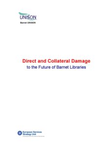 Analysis of Barnet Councilโs proposals for the Library Service โ 46% job loss and 70% cut in hours. 72% of library opening hours will be unstaffed technology-enabled opening with 10% being volunteer-supported. Highlights widespread community opposition, flawed economics and the false claims made to justify the transfer or outsourcing of the Library Service.